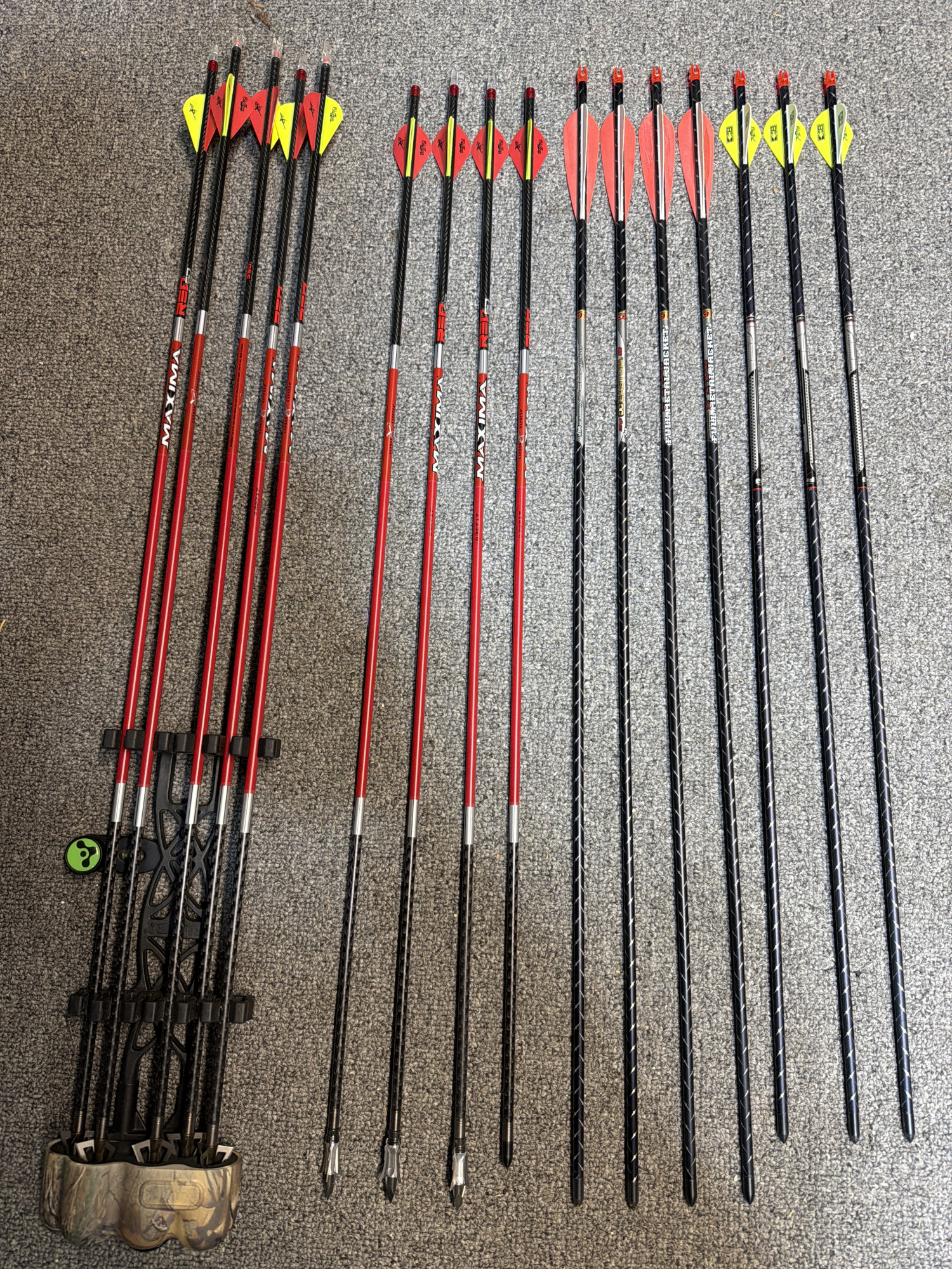 • 21 arrows all but 3 Easton cut to 29” the 3 Easton are cut to 31”:14 Carbon Express Maxima .350 (5 with Muzzy broadheads, 3 with expanding broadheads, 4 with field tips) + 7 Easton Full Metal Jacket with field tips