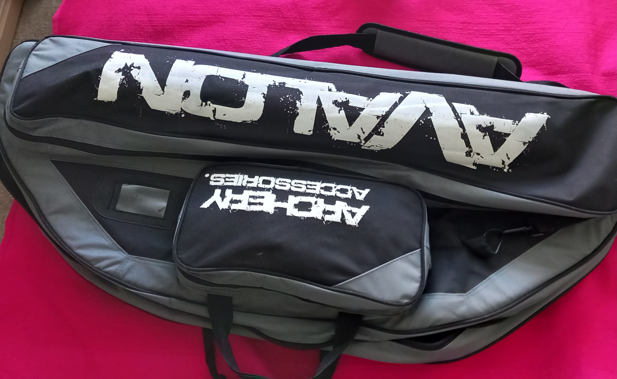 Strong canvas carry bag with accessory pockets including provision for arrows and long rods.