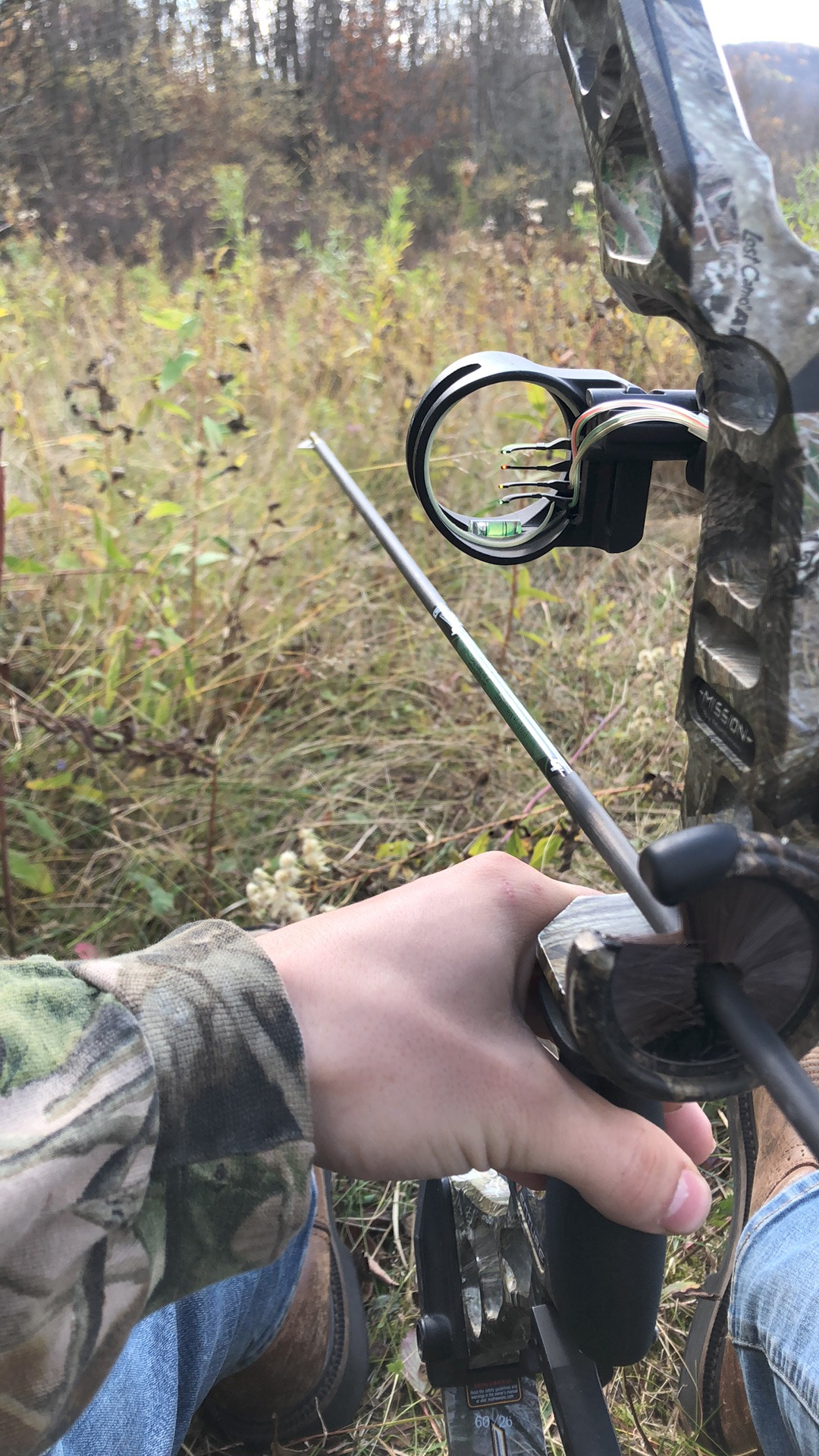 MISSION by Matthews compound bow, probably needs restrung and new string stop. Has a new 5 prong sight with illumination.