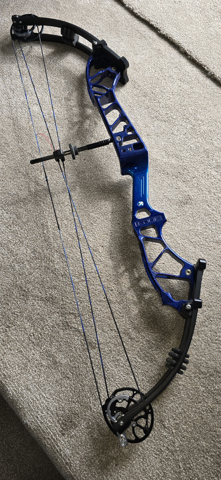 Mybo Edge bought new from Merlin Archery. Was my spare bow in nice condition string and cables replaced recently no obvious chips or scratches. Currently set at 27.5 draw with E2.F module 40-50# limbs. I do have some modules 24 25 26 and 26.5 drawlength. Also have 50-60# limbs which are the original ones.
