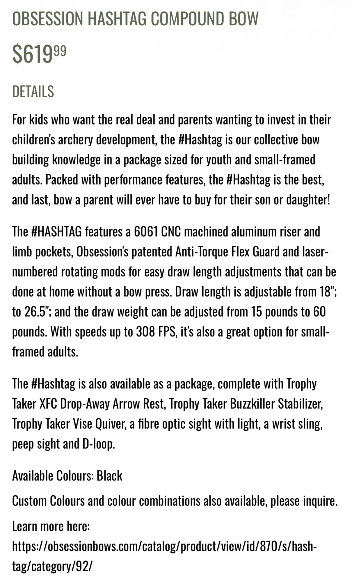 OBSESSION HASHTAG COMPOUND BOW with accessories