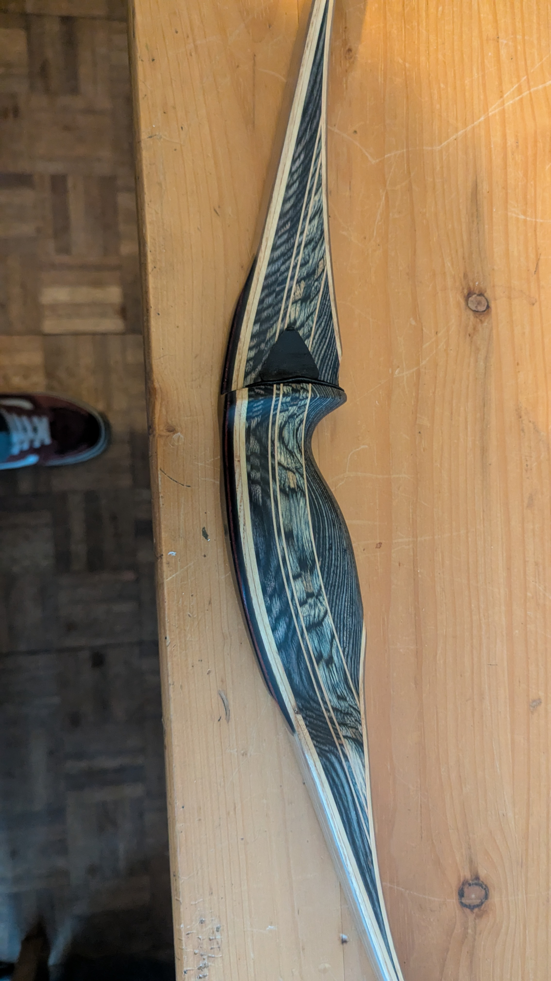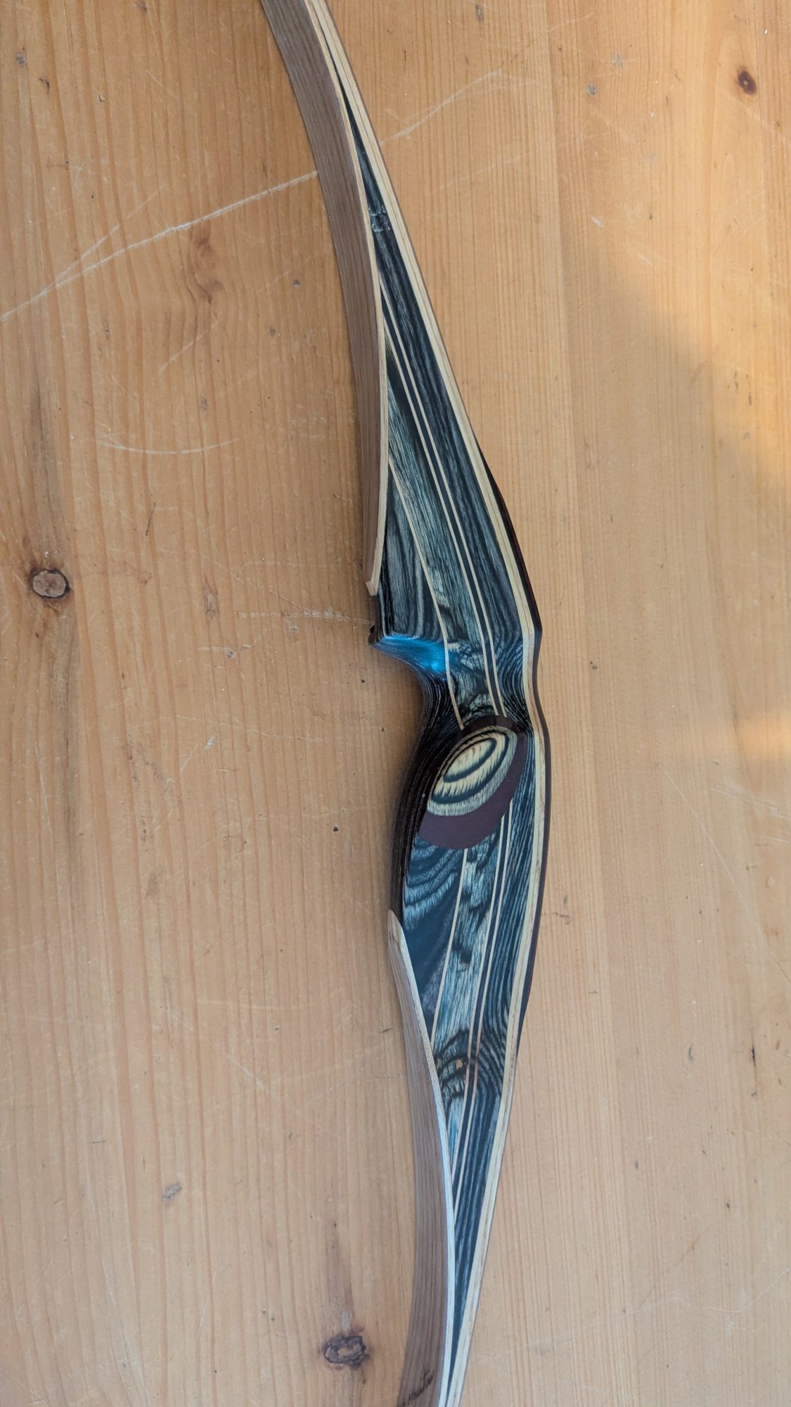 Old Mountain Mesa hybrid longbow. 64" length. 35# draw weight at 28". Right Handed. Bearpaw whisper string. Less than a year old, bought from Merlin Archery in March this year. Lovely bow, very smooth to shoot and very consistent. Only selling due to going up in draw weight.