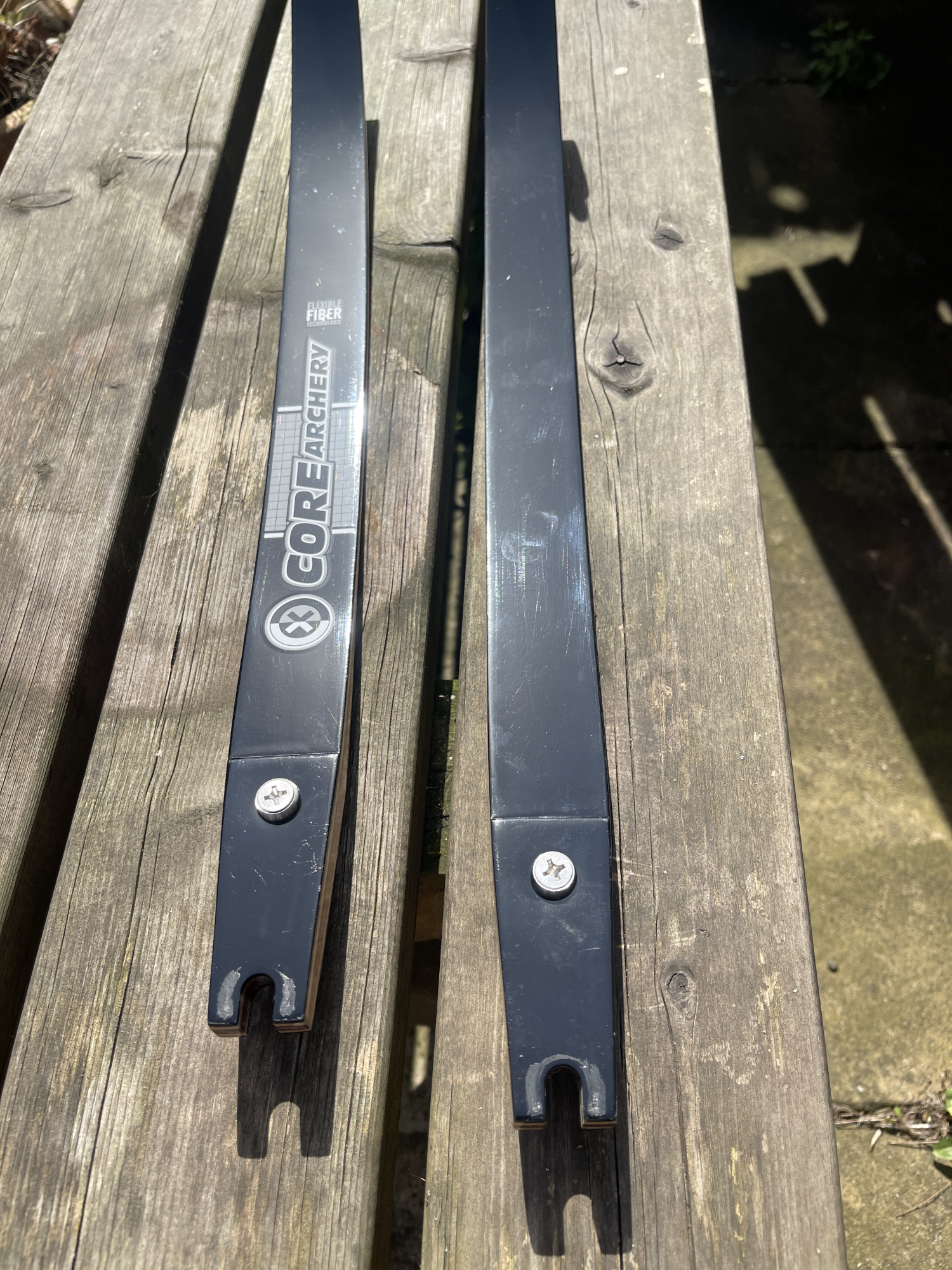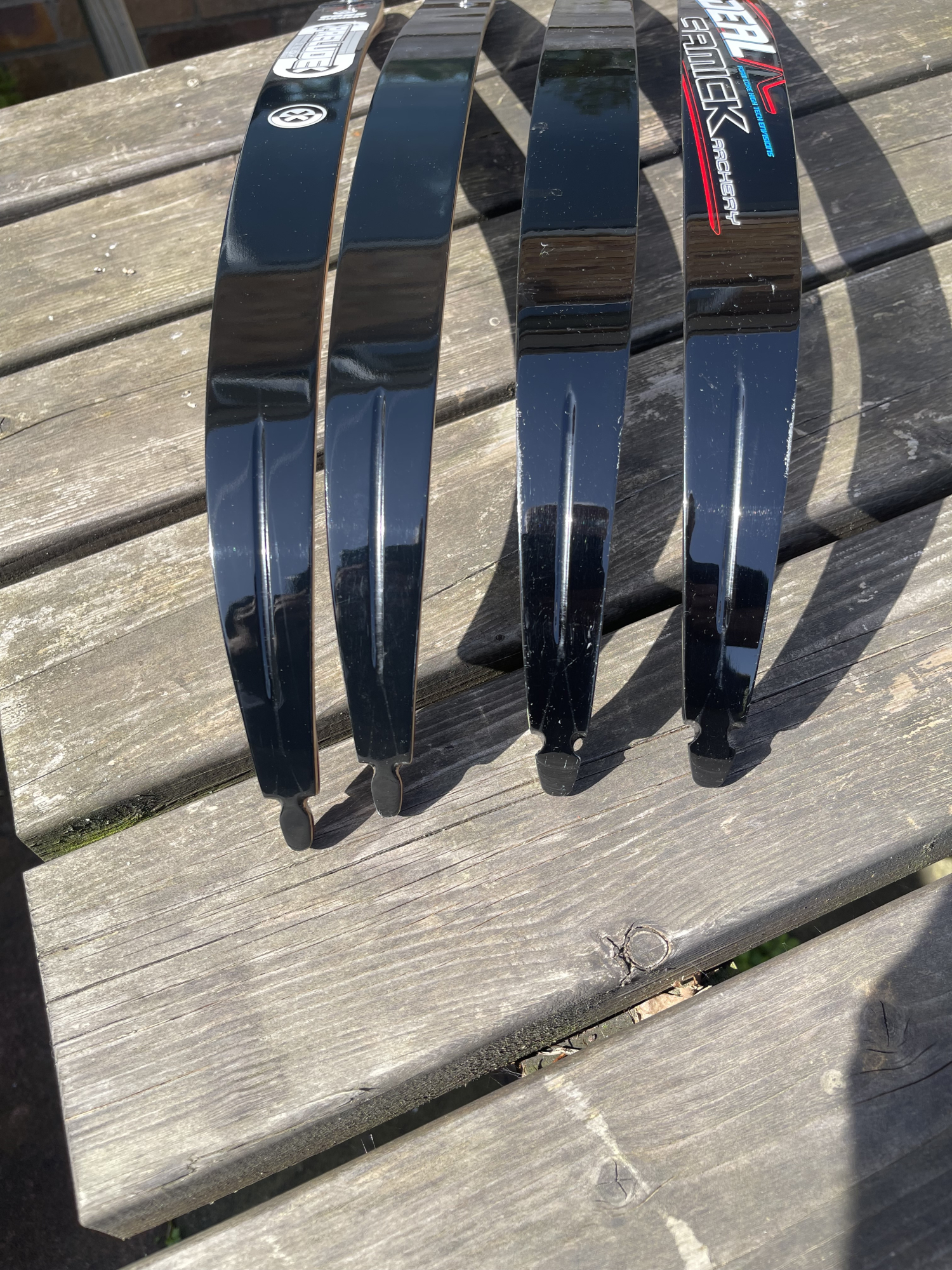 Pair of Core Archery Prelude limbs and a pair of Samick Ideal limbs