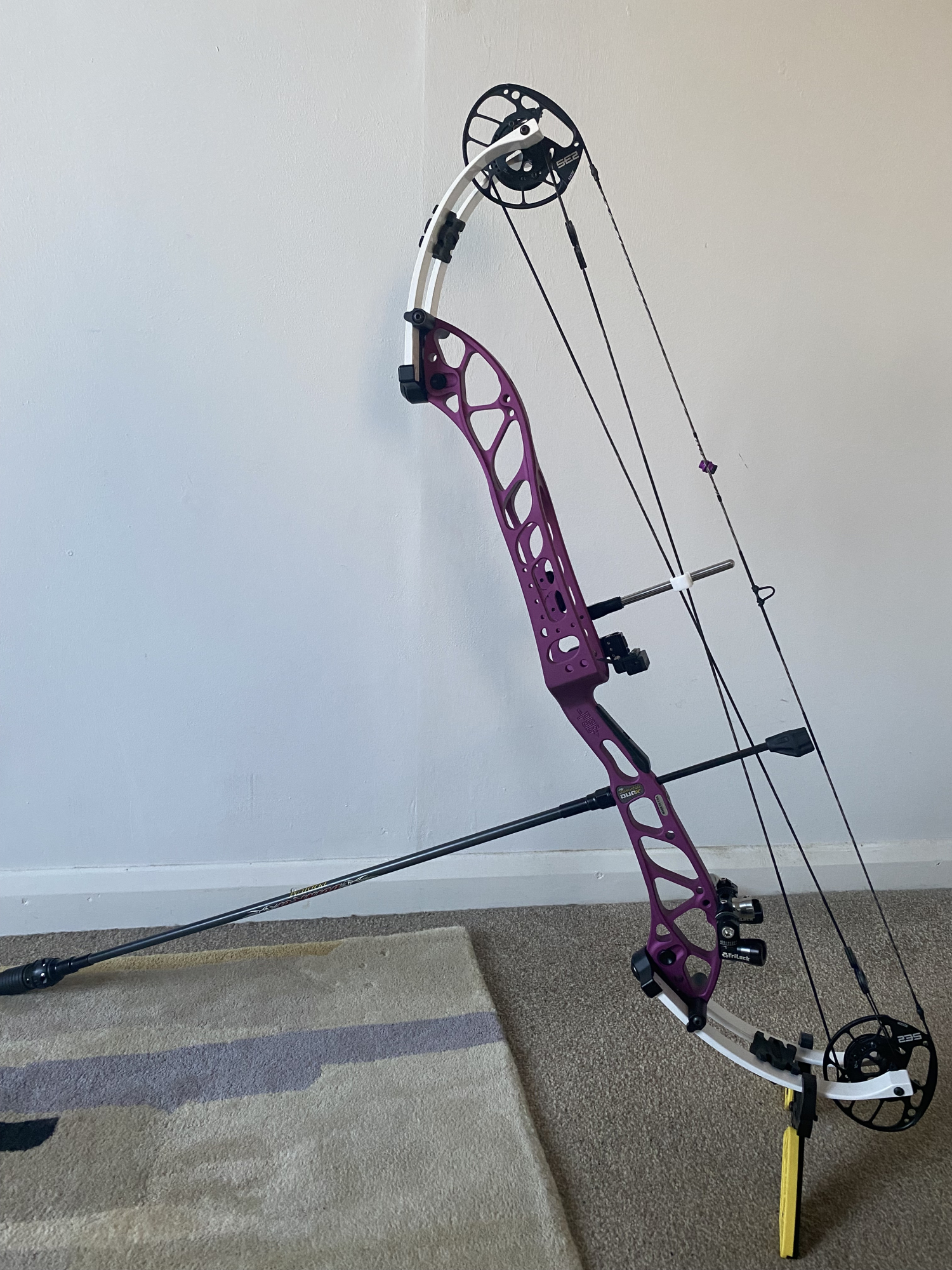 PSE Dominator Duo X 60# 38” Purple for sale (ONLY 2 MONTHS OLD - used only 5 times) INCLUDING Beiter compound rest and speciality peep with lens, also only 2 months old! And including Everest 44 bag. Does NOT include stabiliser mount.