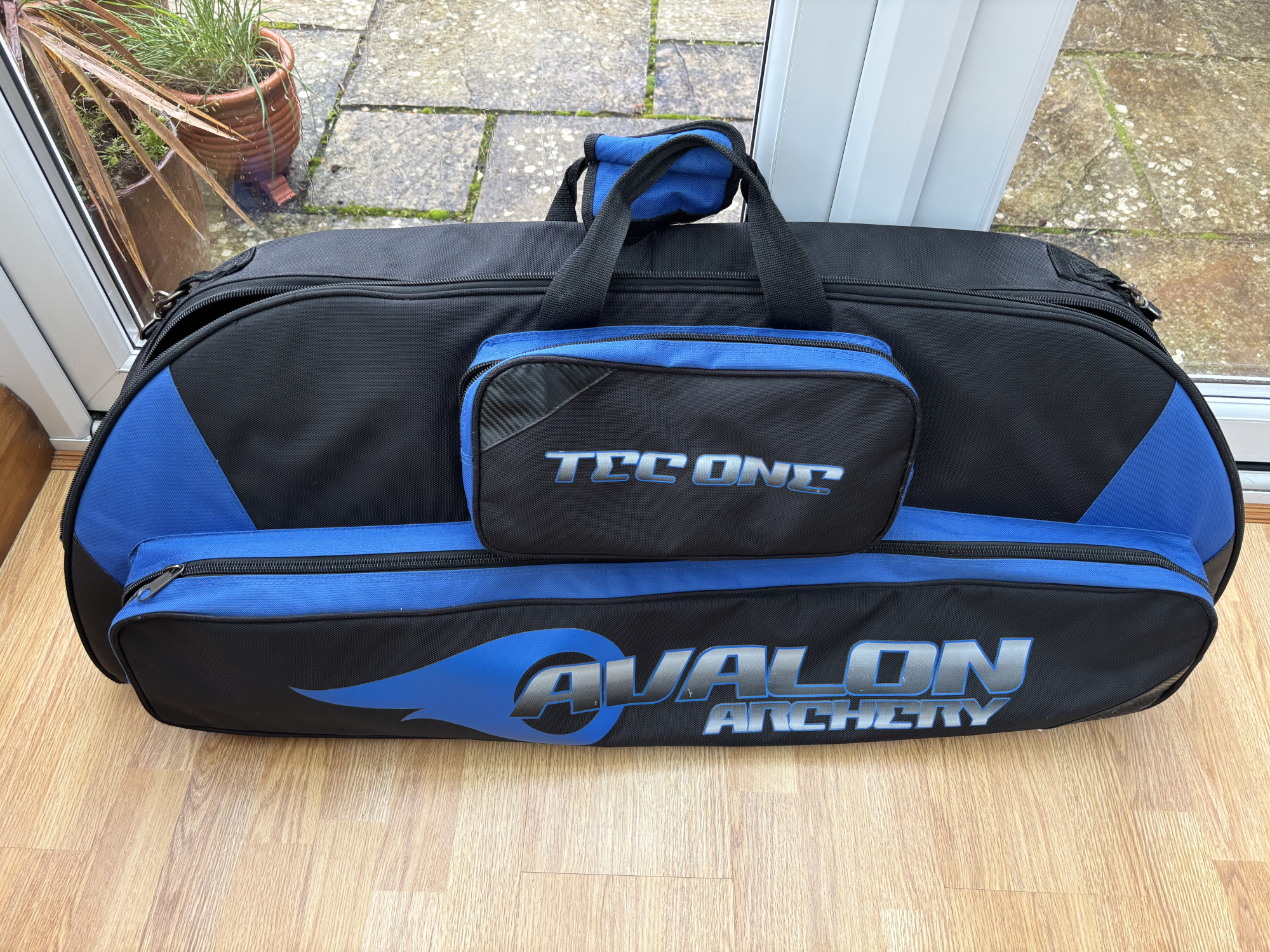 - Avalon Archery Tec One compound bow bag (blue/black) — padded, purpose-built compound bow case