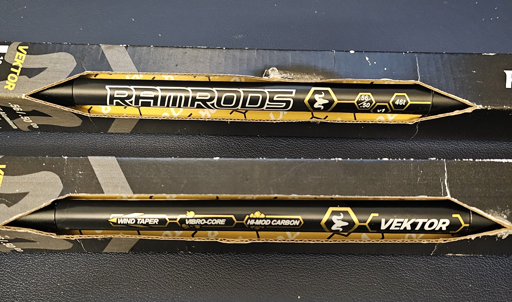 Pair of Ramrods Vektor 12 inch side rods with vibro core (not tungsten) - used but in good condition (marks included in photos don't affect preformance) £125 each from Merlin archery. Only selling as upgraded to 15 inch versions of the same model.