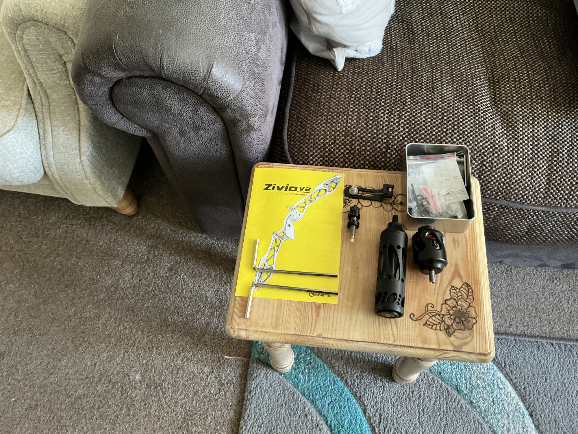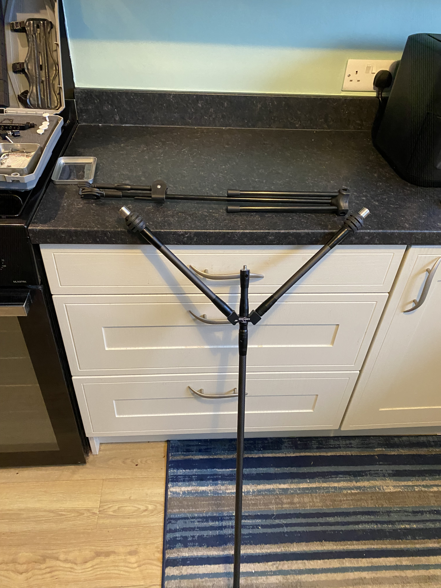 25” Kenetic ZivioV2 riser Arca carbon foam limbs 32lbs. Avalon classic sight AmeyXG5 stabilisers 28” adjustable bow stand 3/5” shock rods stringer and Avalon tyro pusher button. Fitted with an Zniper drop away rest and a spare rap around rest All tools and riser keys. Plus a hard bow case.