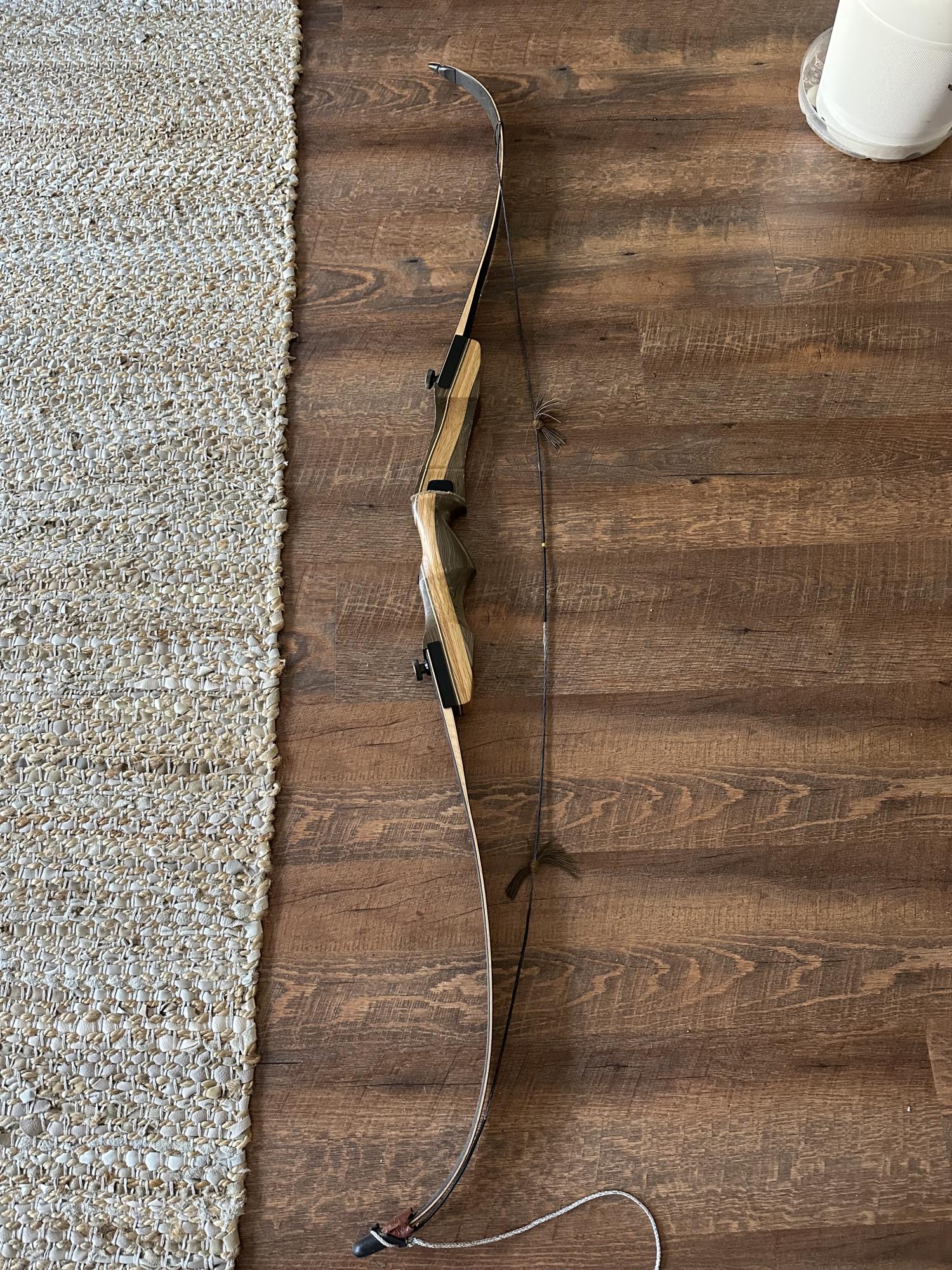 26 inch recurve Sage bow, right handed. I believe it is a 40 or 45 pound draw. Used less than 10 times. No shipping available . Pick up only in Cary, North Carolina. Includes a dozen or so target arrows