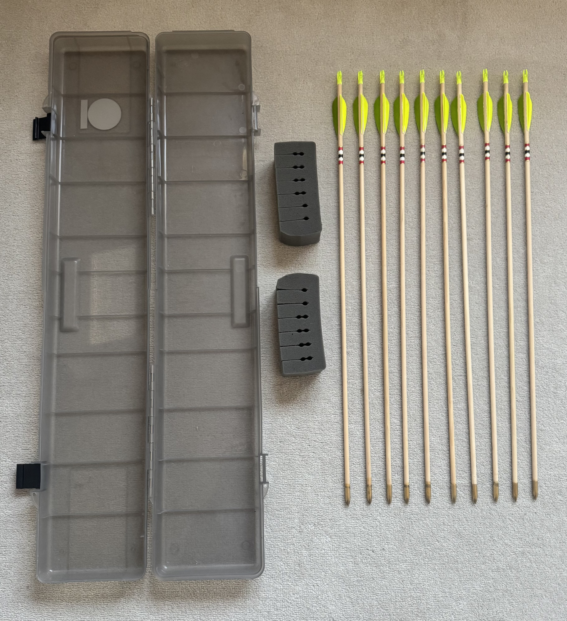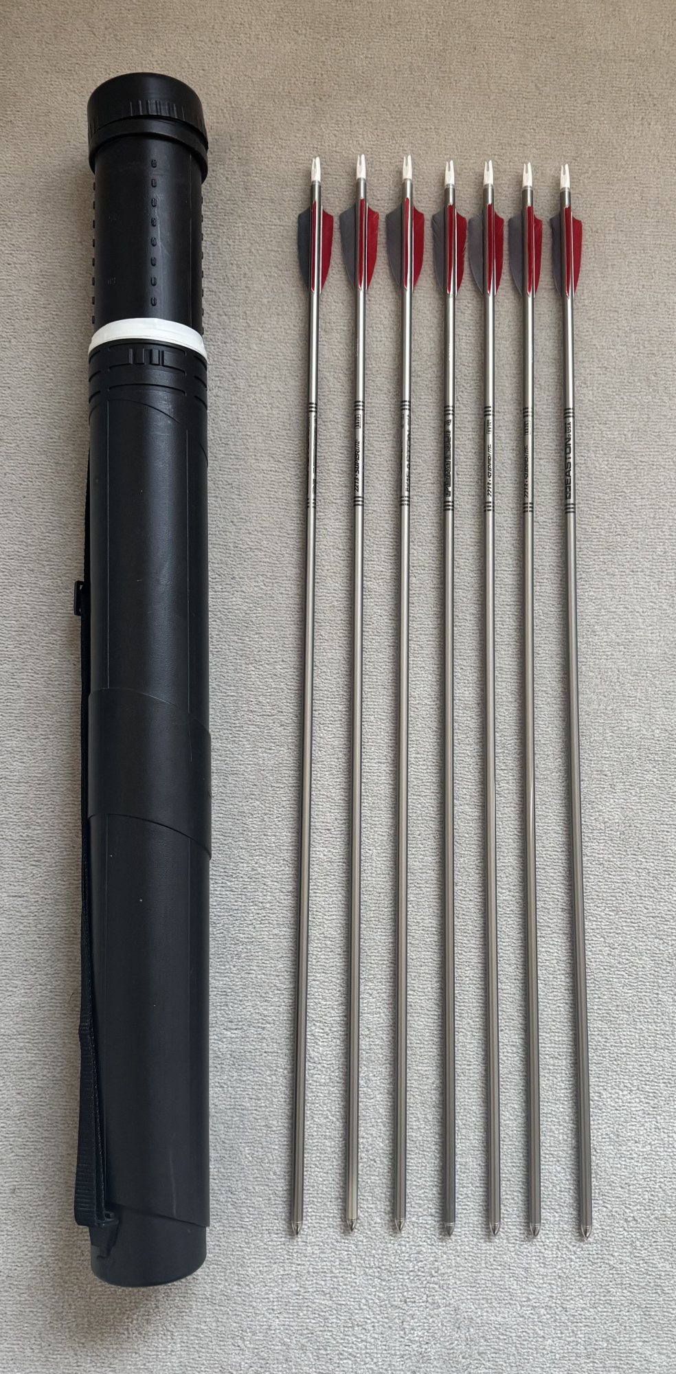 Hi, these are my late Mother and Father’s arrows for multiple disciplines. Some are complete and others are just shafts. My Father made some of his own arrows so not sure which are his or not. They range from 70.5cm to 84cm in length, have lots of numbers scribed in pen, not sure what they mean. I can provide further pictures if required. There is a further set which I cannot put the picture up. I know nothing about archery, so please no technical questions. May suit a club or someone starting out not sure.