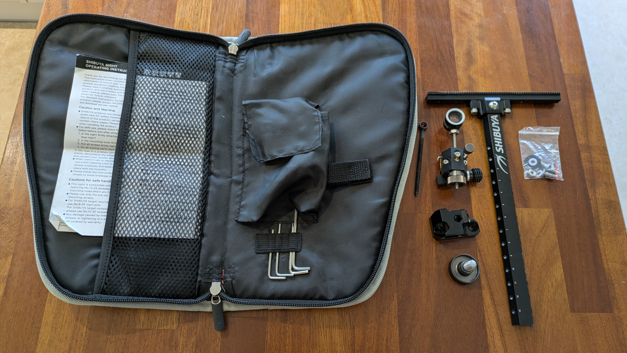 Shibuya Dual-Click recurve sight. Includes all accessories, case and manual. Includes original sight pin and alternative sight (no magnification).