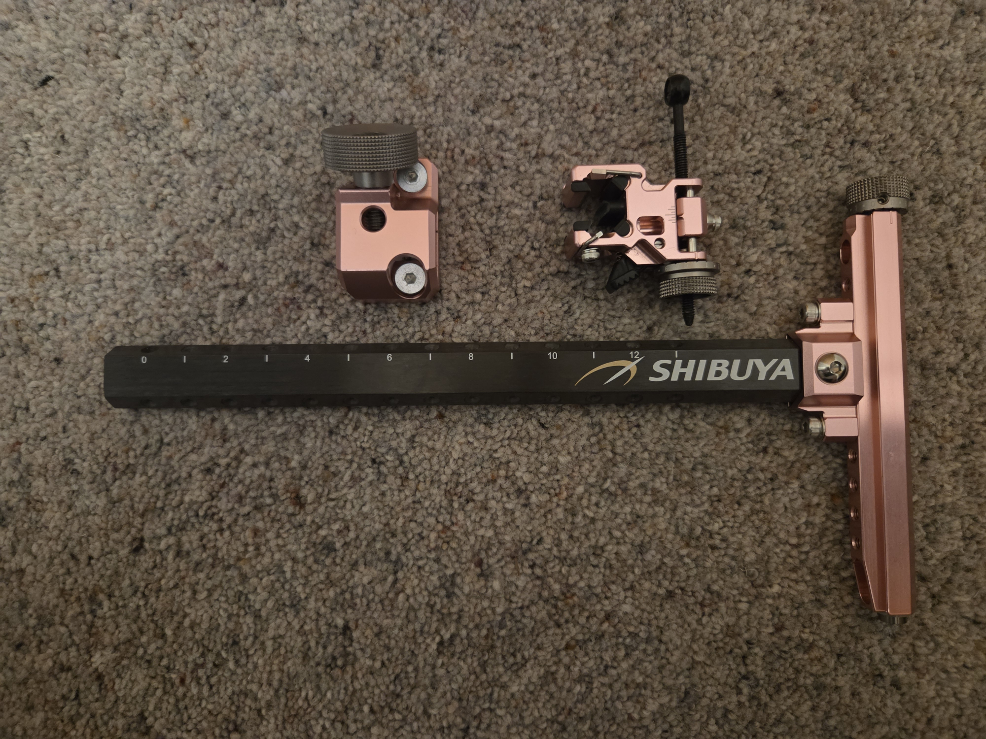 Shibuya Ultima II RC Carbon Recurve Sight in the pink anodised finish. Collection from BD20 or postage can be arranged at buyers expense.