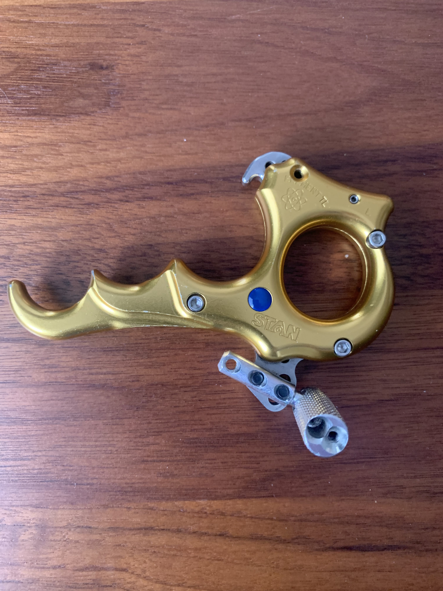 This listing is for a Stan Element TL in gold finish, size L. The Element TL is a resistance release aid. This one is in very good condition, just too big for me.