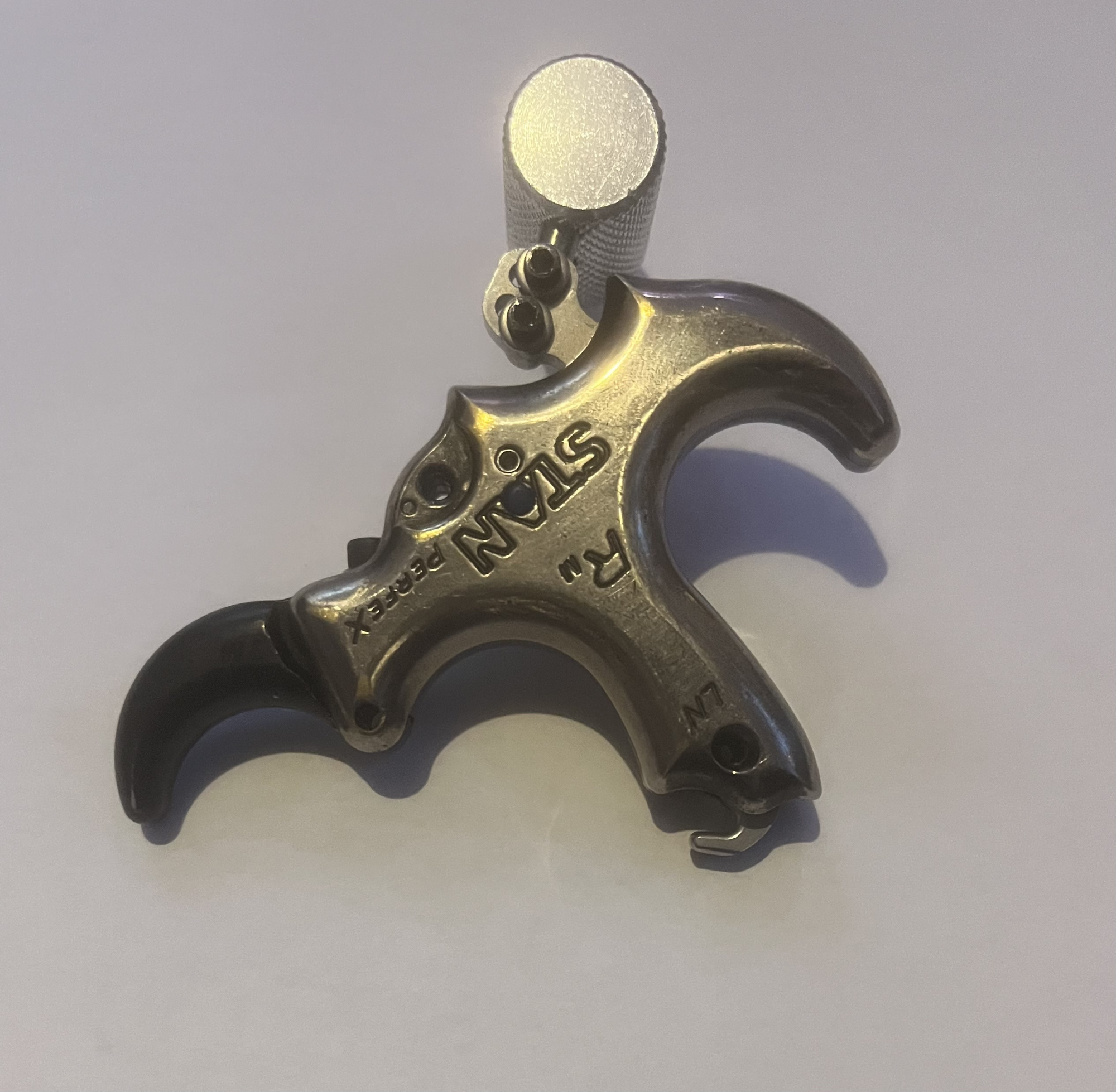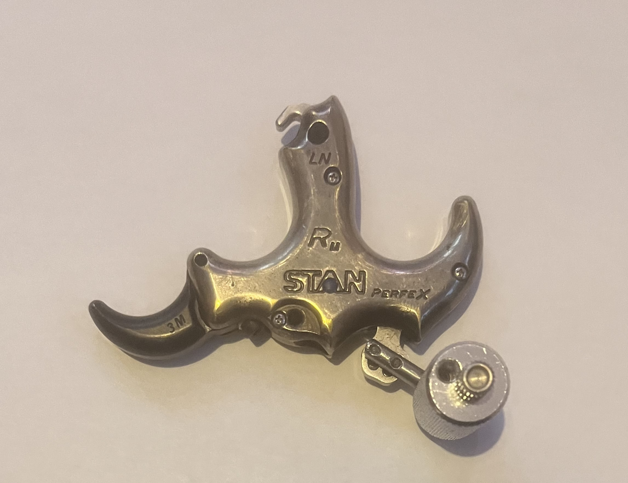 Stan Perfex back tension release. In excellent condition and works perfectly. The release has a built in safety, so it truly is the perfect training aid if you want to learn back tension and can be easily adjusted to suit your holding weight. It’s also great for anyone who struggles with target panic.