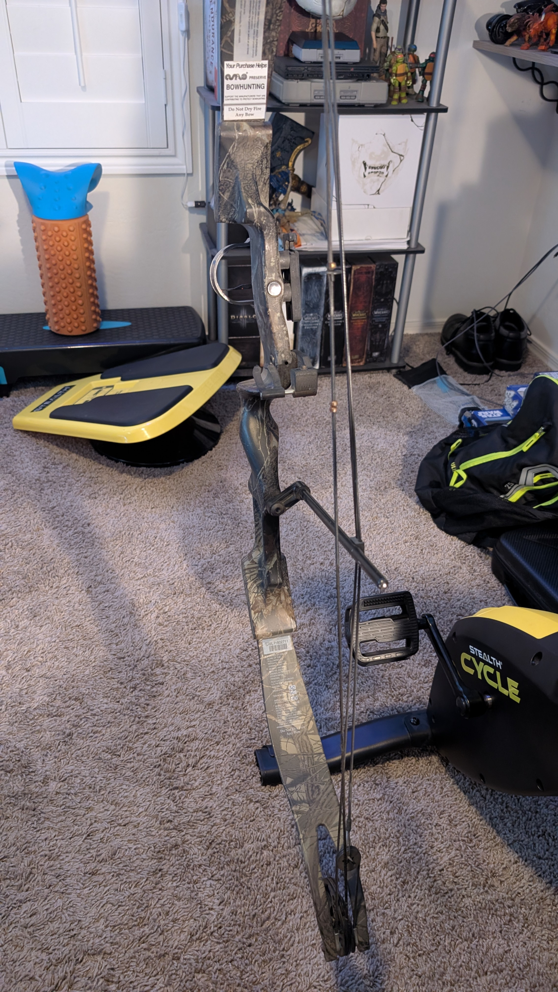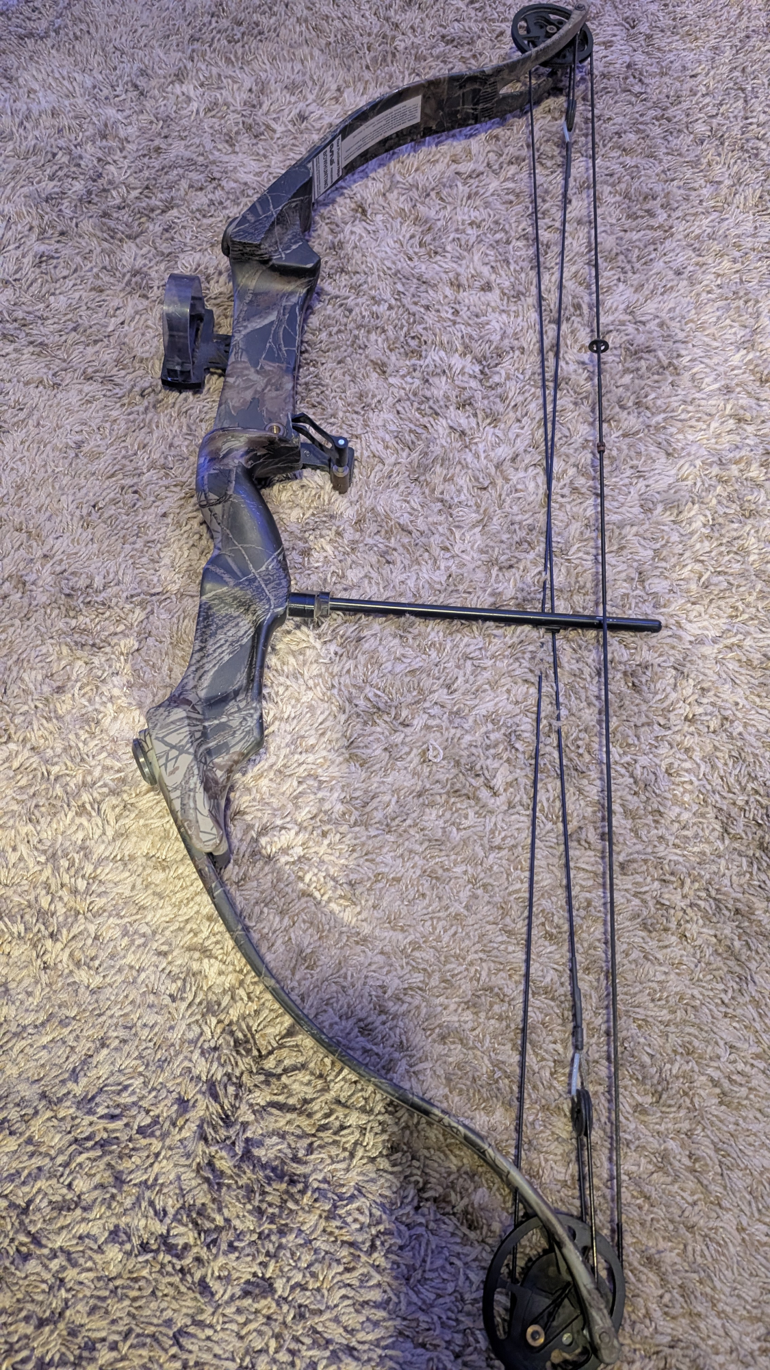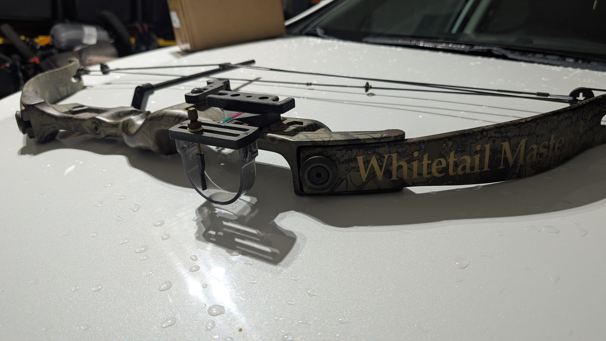 Whitetail Master compound bow. It was only ever used for target shooting. It has a 60lb draw weight and 30 for draw length. It has been living its life in a dry location waiting for the day to be adopted and used properly again.