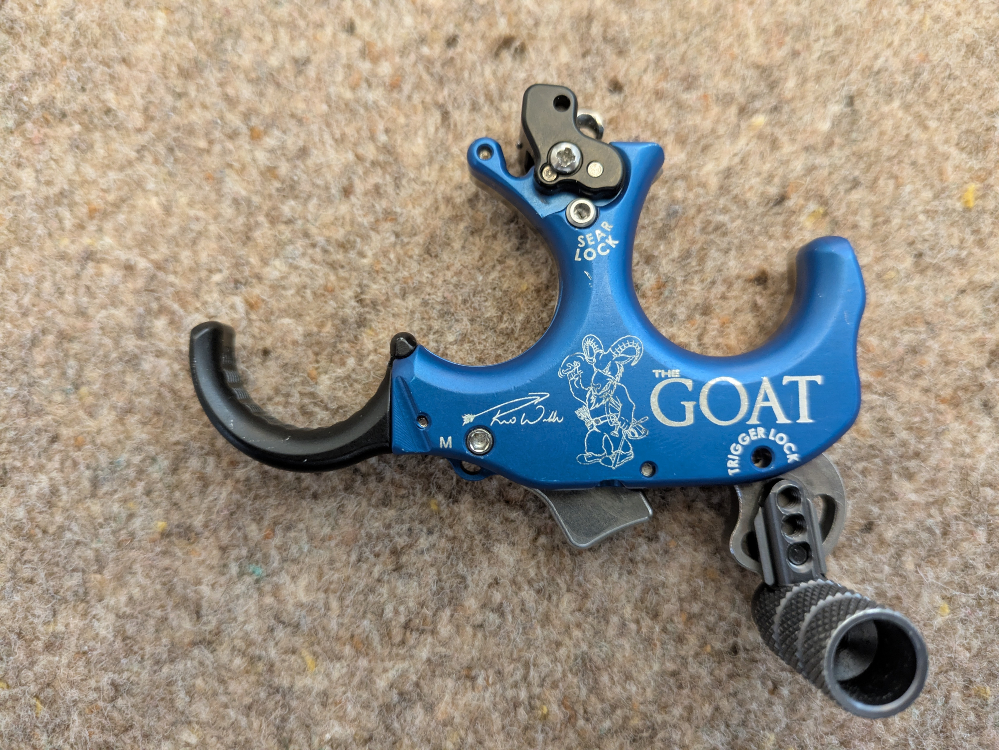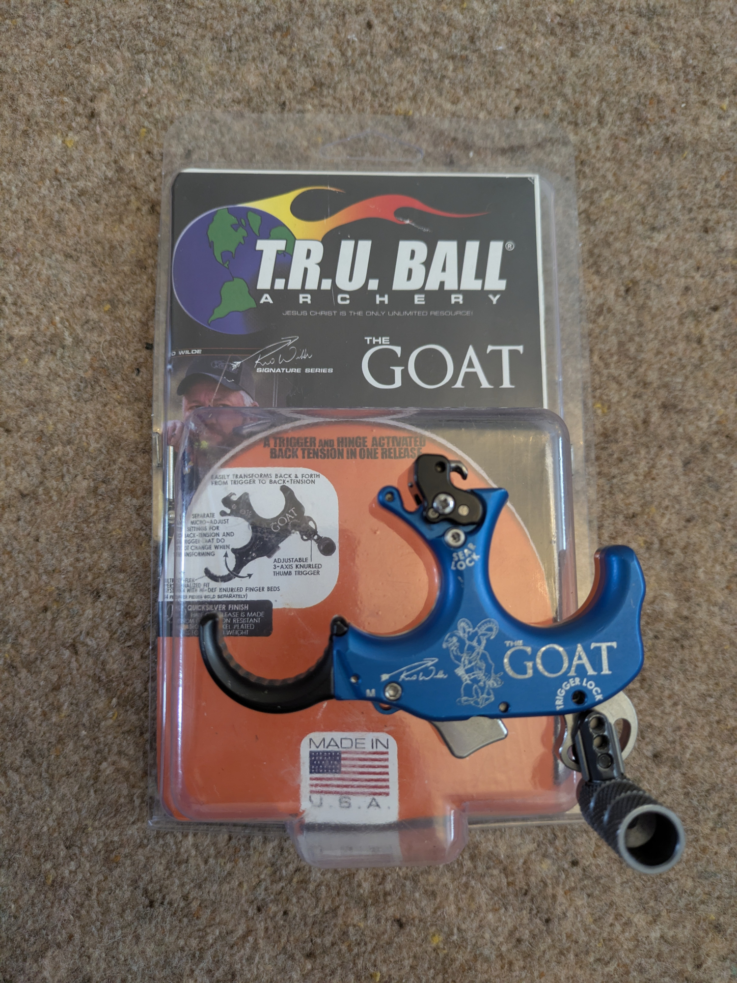 TRUBall Goat release aid in Quicksilver and Blue medium size. Comes with original box, instructions and spares.