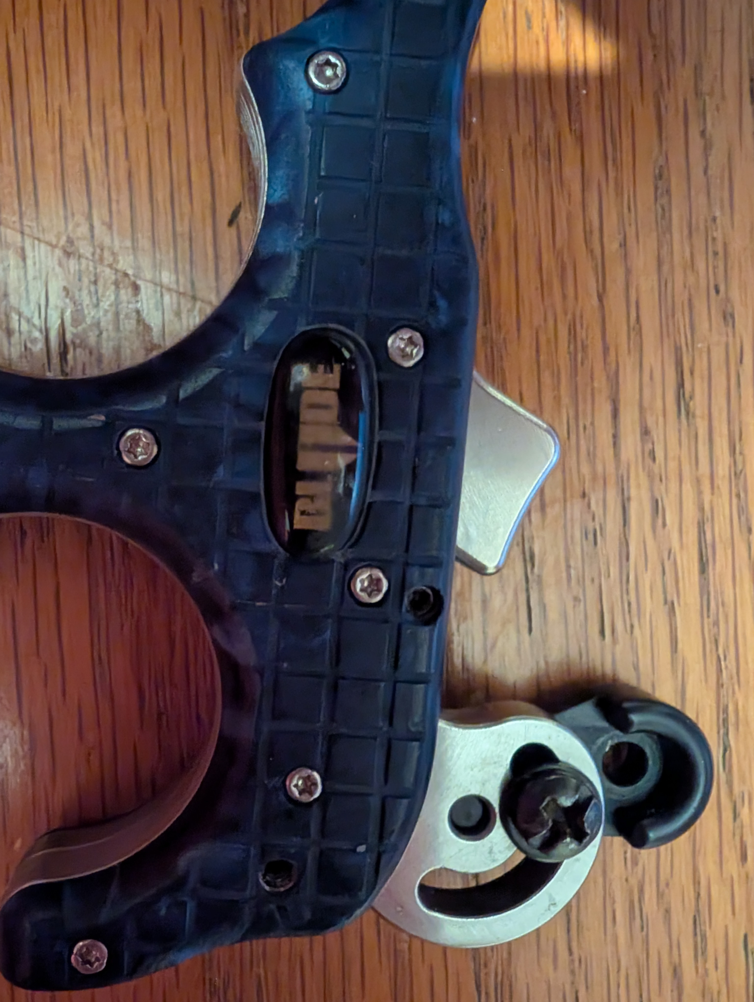 In good working condition but has a small chip in the plastic covering at one end.