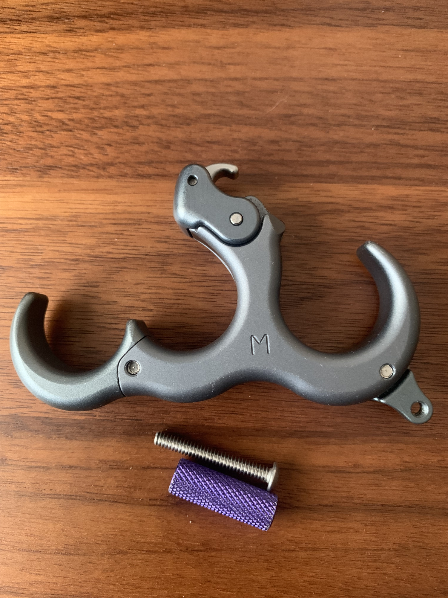This one is in immaculate condition as I only shot with it for a few days and just couldn’t get used to it so am sticking with my thumb release. I did however find it extremely comfortable. It comes with a purple thumb peg which is sold as an extra when purchasing the release from new. The box and instruction leaflet are also in excellent condition.