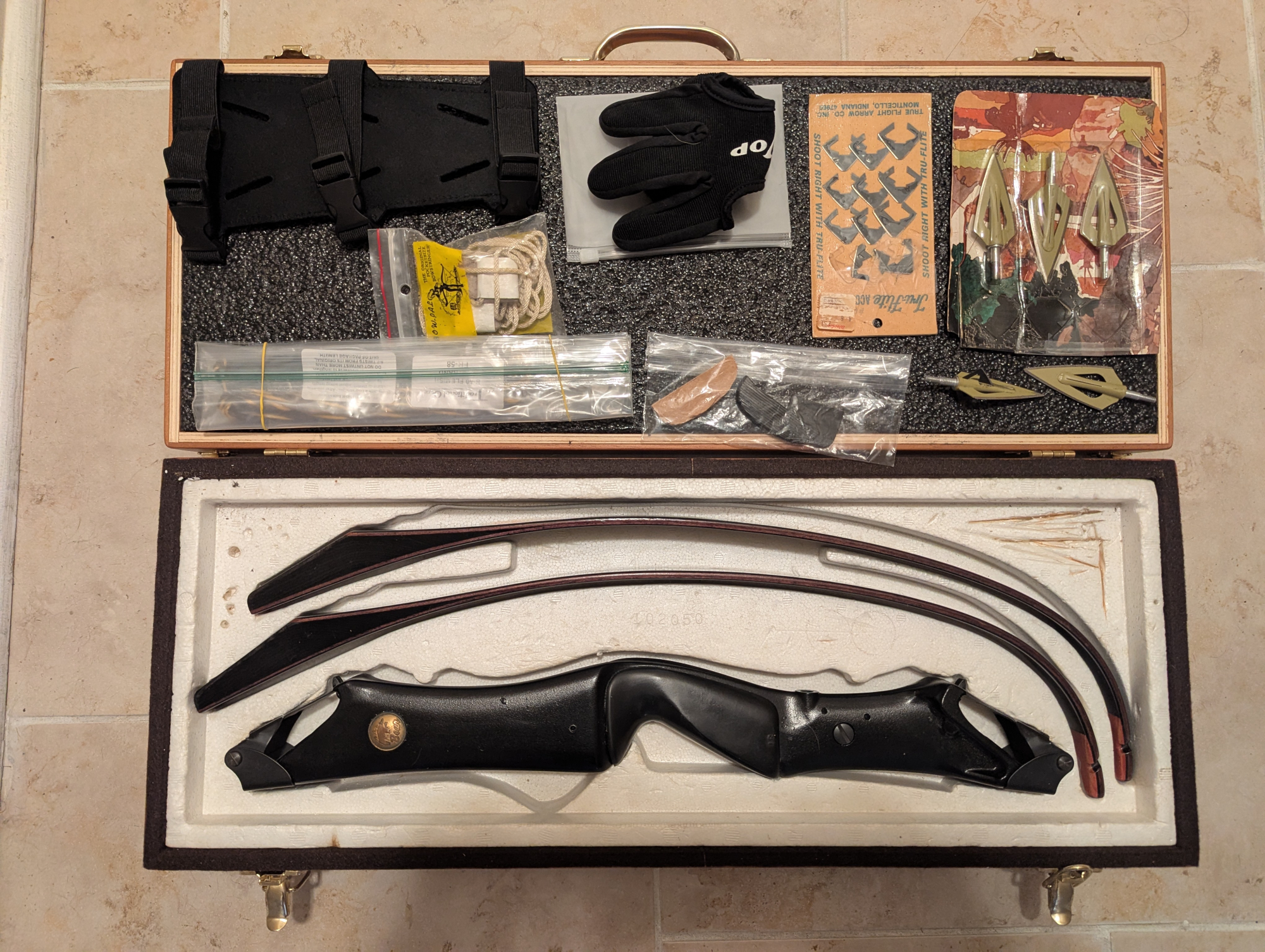 This is a beautifully maintained, complete vintage archery package — perfect for collectors or traditional archery enthusiasts.
