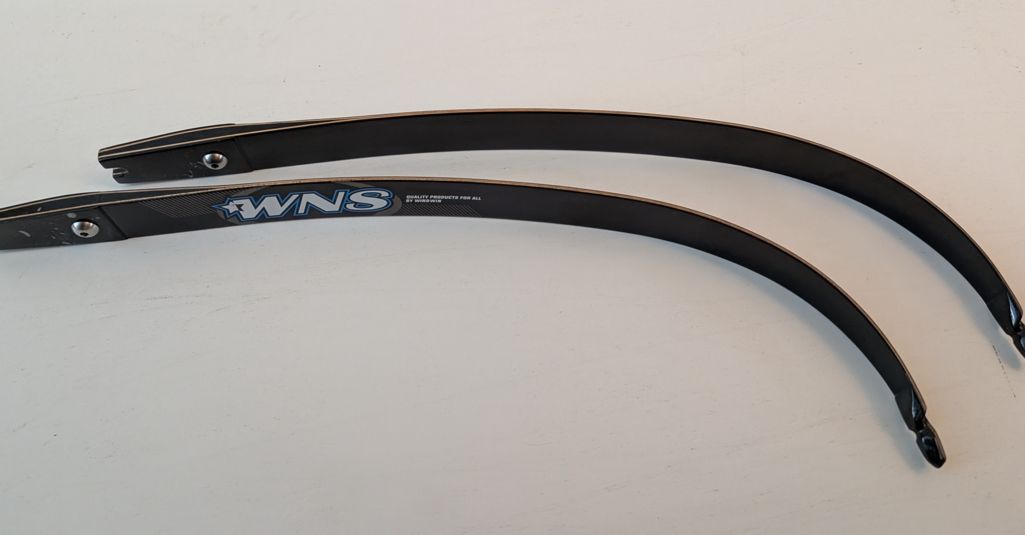 Lightweight WNS Delta F3 short limbs. Fibre/wood construction. 16lbs@66 inch or 18lbs@64 inch. Decent condition - a few scuff marks where the limbs mount into the riser but those are purely cosmetic. Normally £90 new.