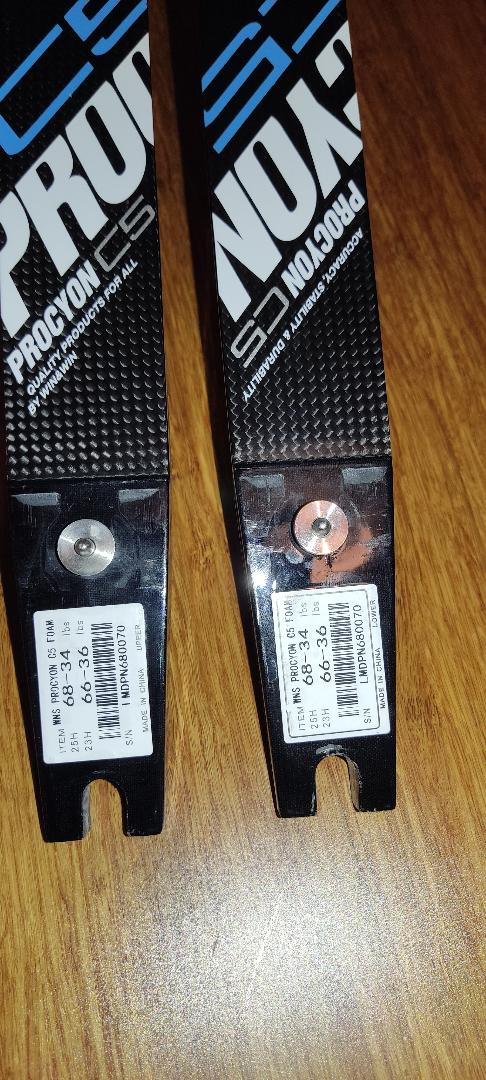 Used WNS Procyon C5 carbon foam limbs 34lb purchased September 2025, selling as moved up to higher poundage limbs. Boxed, manual, sleaves.