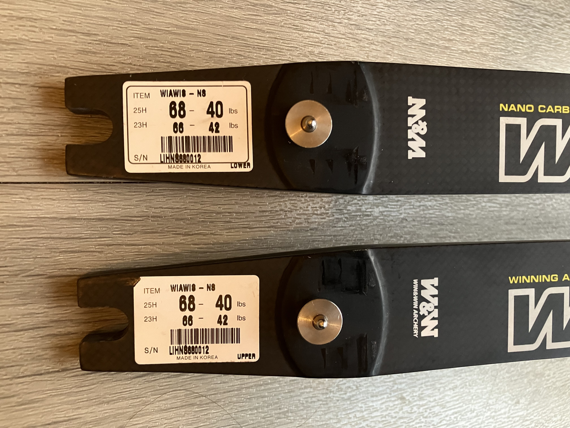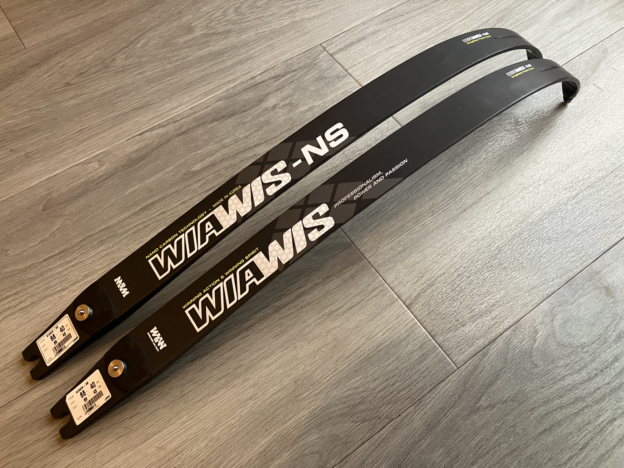Win&Win Wiawis NS foam core medium 40# recurve limbs, used in good condition, cosmetic wear marks as per photos. Come with protective limb covers. Postage at buyers expense.